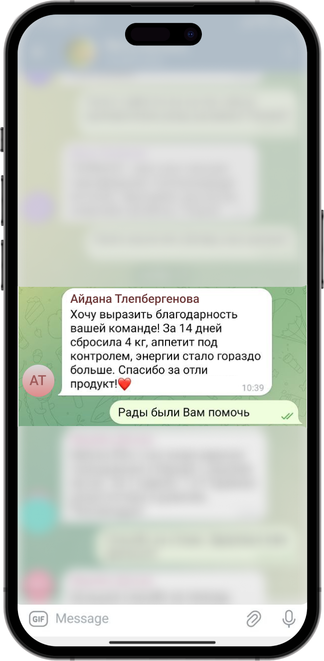 Но я и сама не ожидала таких быстрых результатов. Вкусный Матча Slim полностью изменил мою жизнь и поднял мое настроение. Теперь все вокруг выглядит иначе, и я ощущаю себя так легко, как в молодости. Этот продукт оказался не просто средством поддержки здоровья, но и настоящим источником радости и улучшения качества моей жизни.