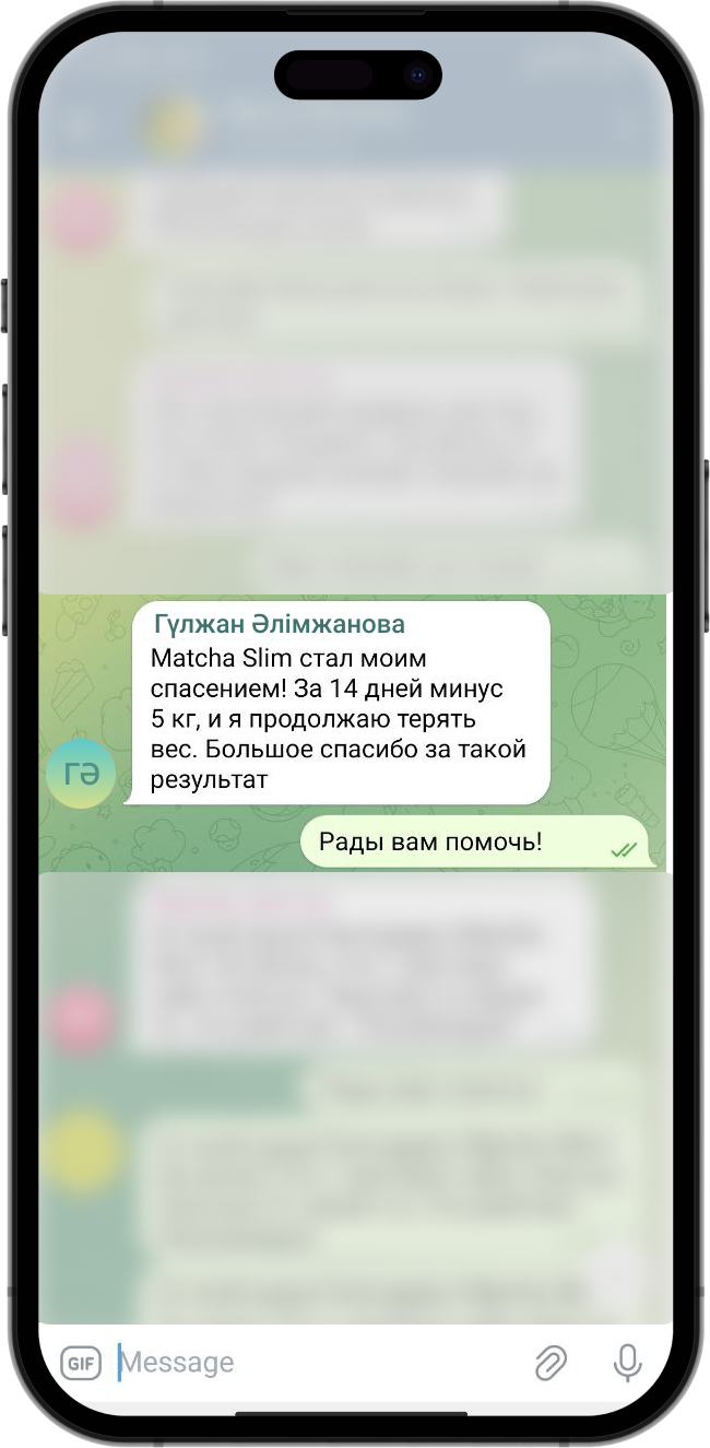 Я всегда выбираю только натуральные средства и не доверяю 'химии'. На форуме я нашла единомышленников, любящих все натуральное, и там обсуждали Matcha SLIM. Научное исследование этого продукта меня заинтересовало. После того как мне исполнилось 30 лет, я перестала заниматься спортом и набрала вес. Однако благодаря Matcha SLIM я неожиданно вернула себе физическую форму, что стало лучшим подарком на мои 32. Мой муж даже сказал, что я выгляжу не на 32, а на 25. Это моя победа!